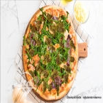 Mascarpone ost, kartoffel, kylling, kebab, rucola, pesto